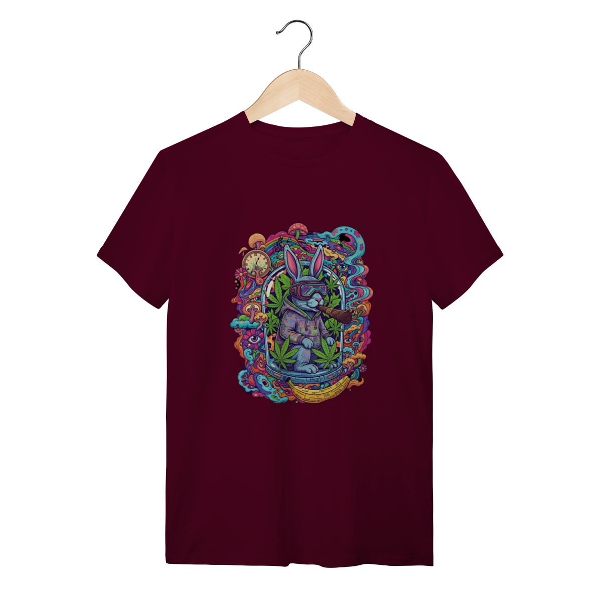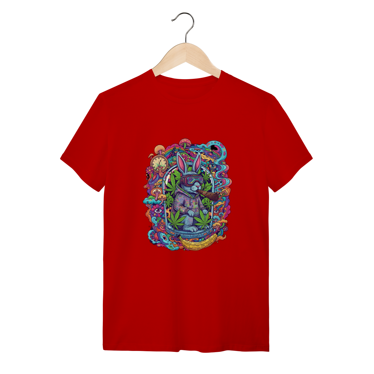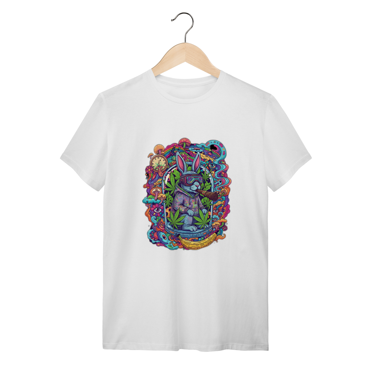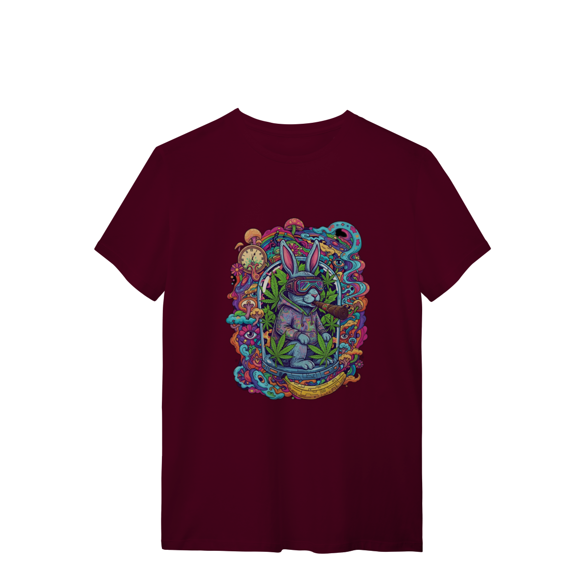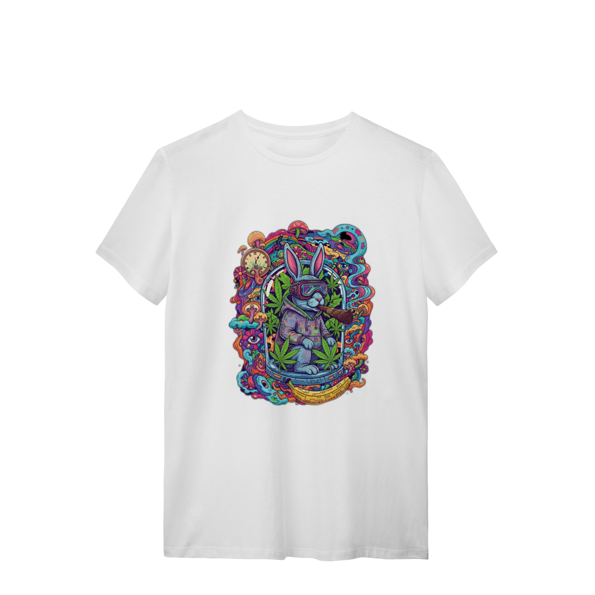 Camiseta coelho doido fumando uma bomba.
