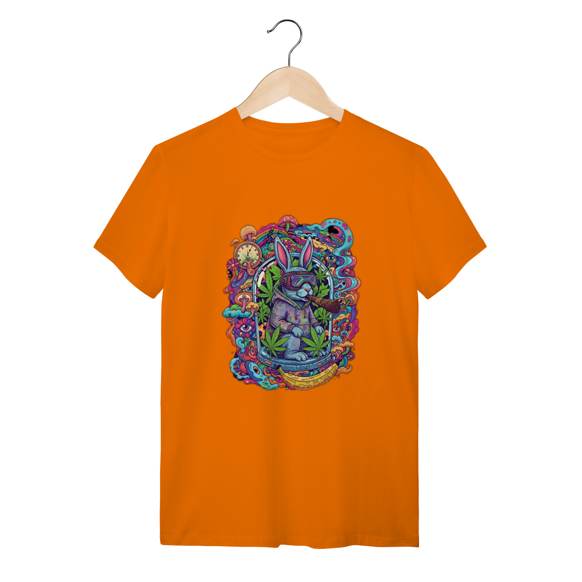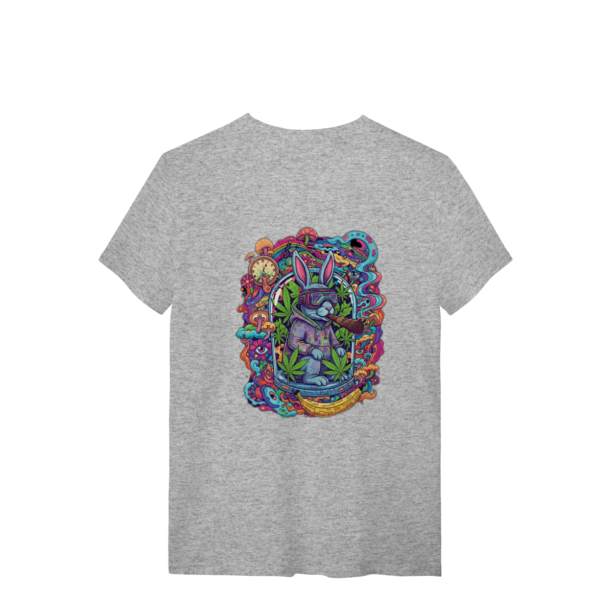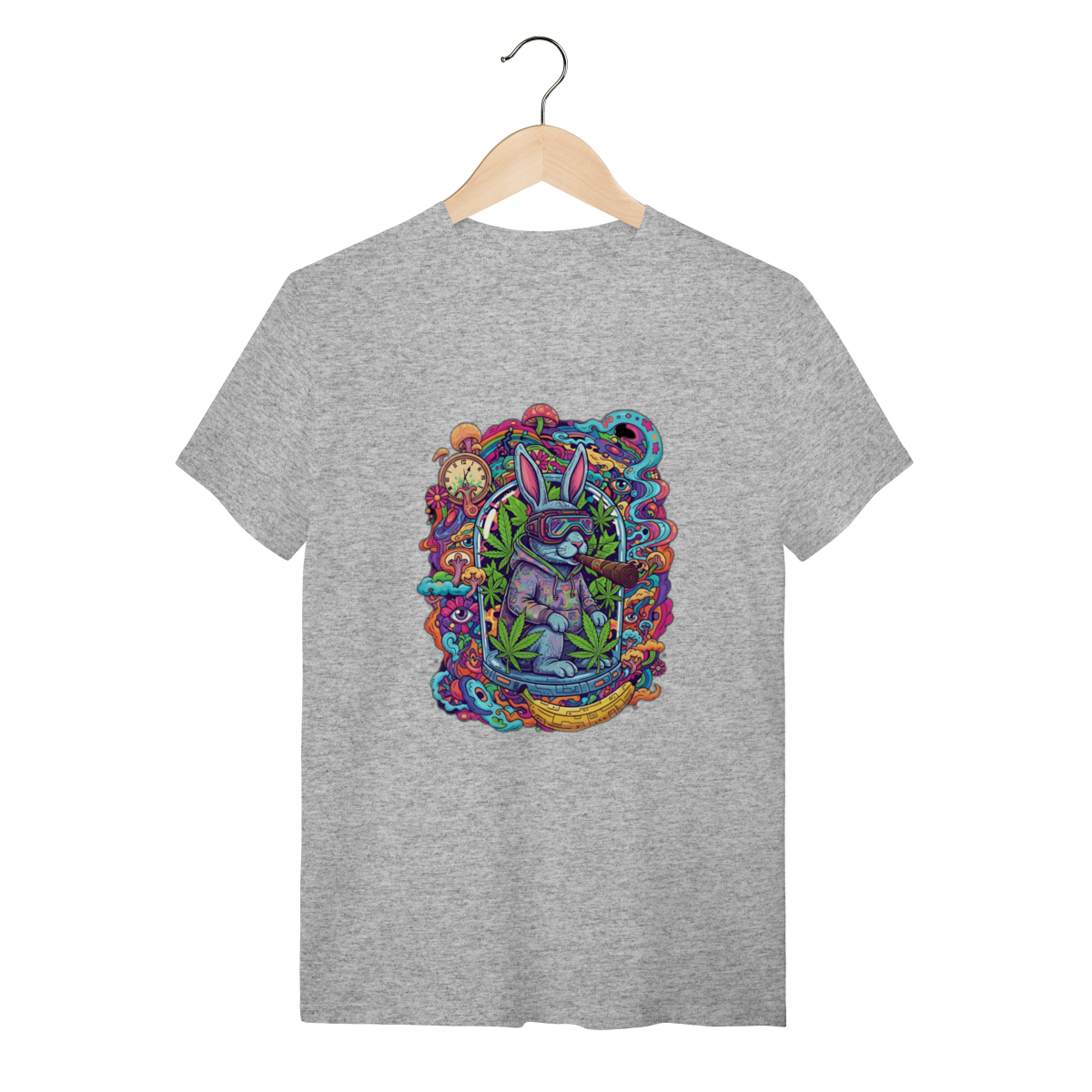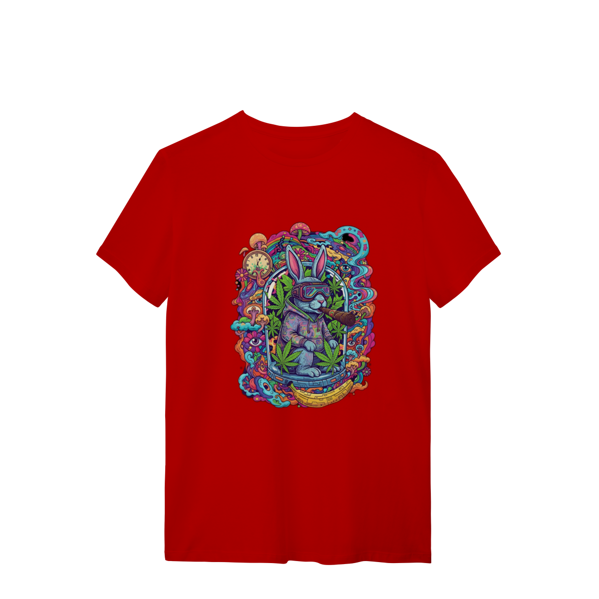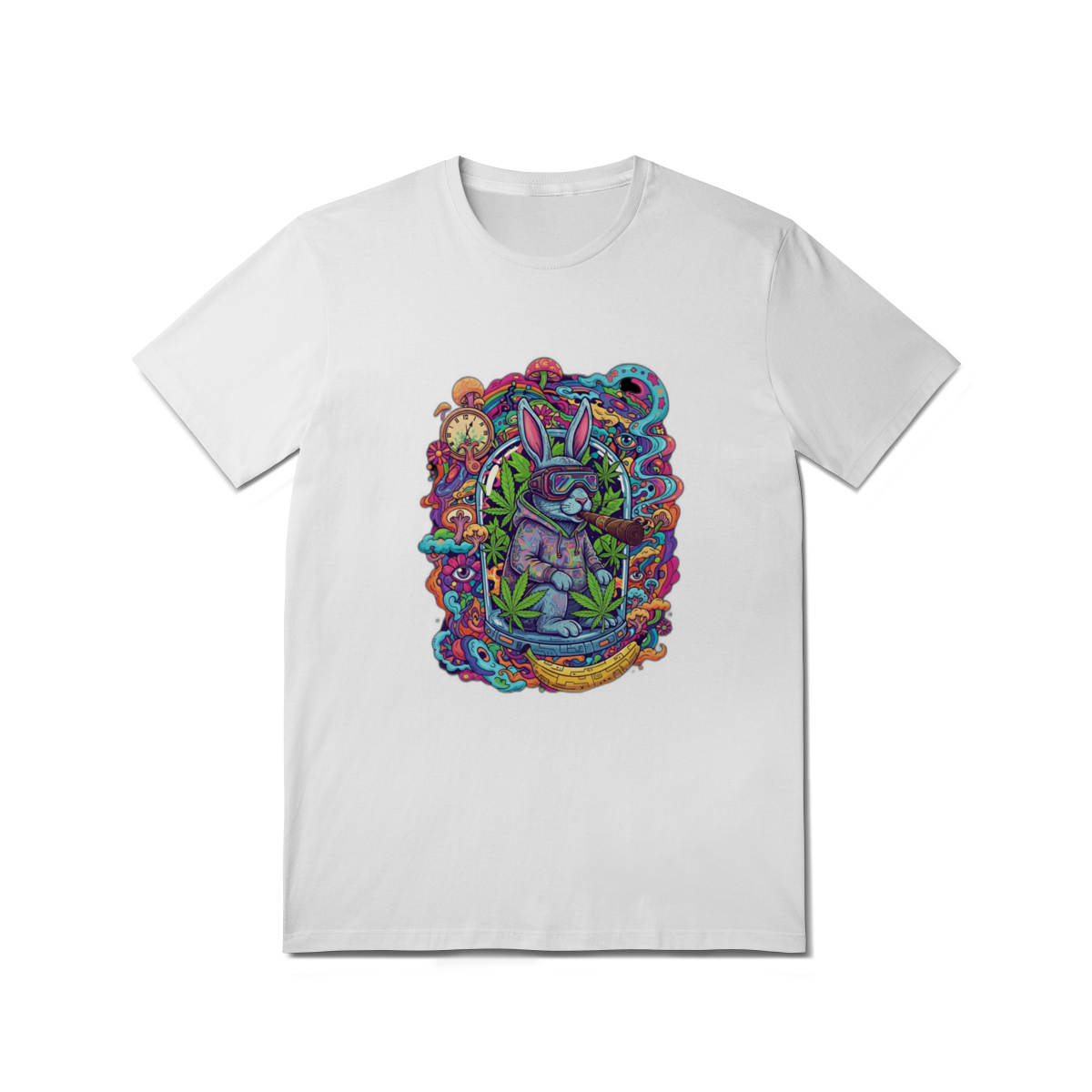 Camiseta coelho doido fumando uma bomba.