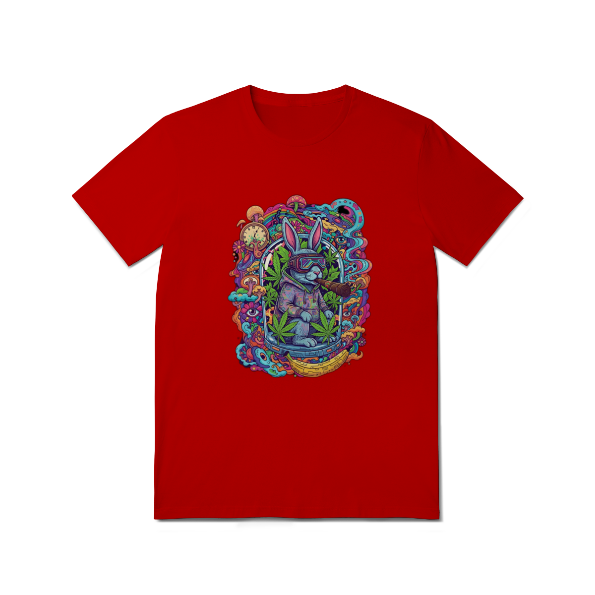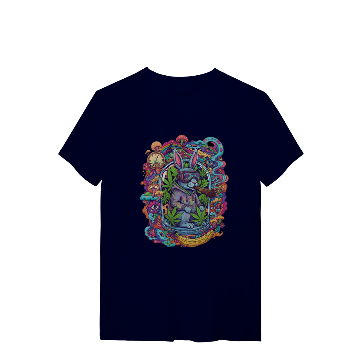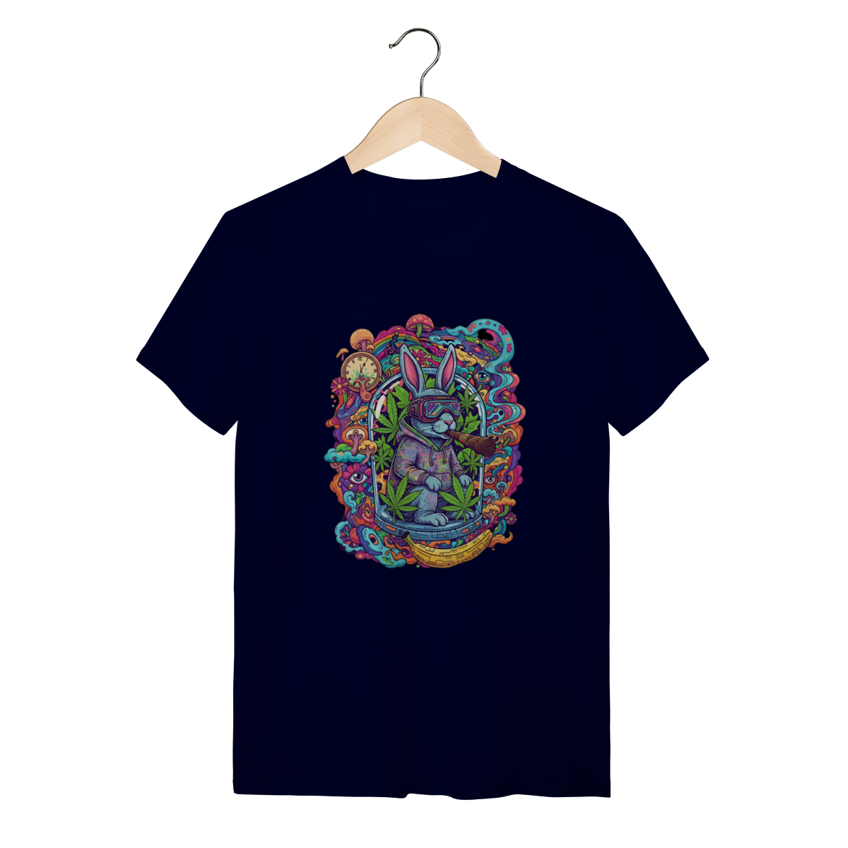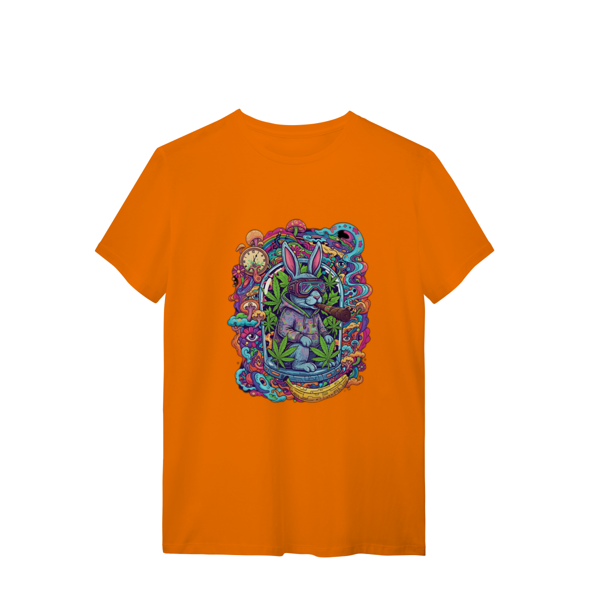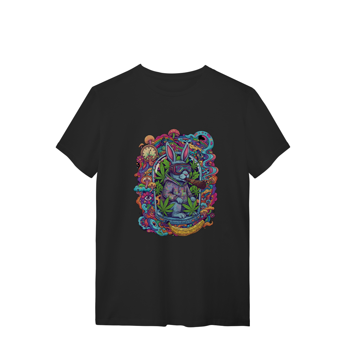Camiseta coelho doido fumando uma bomba.