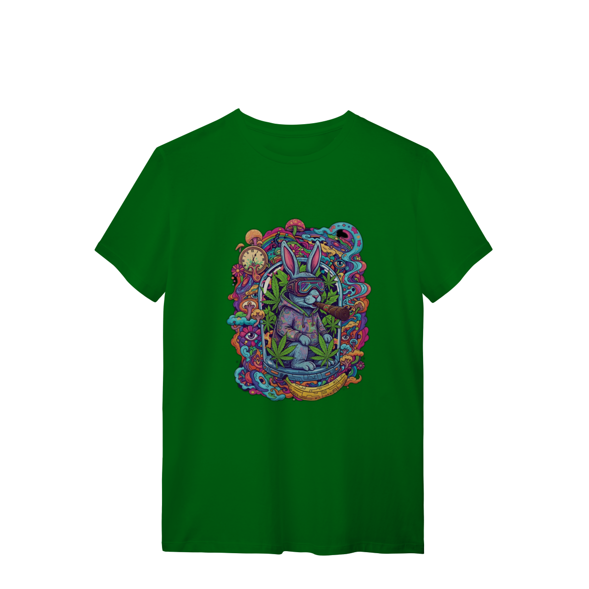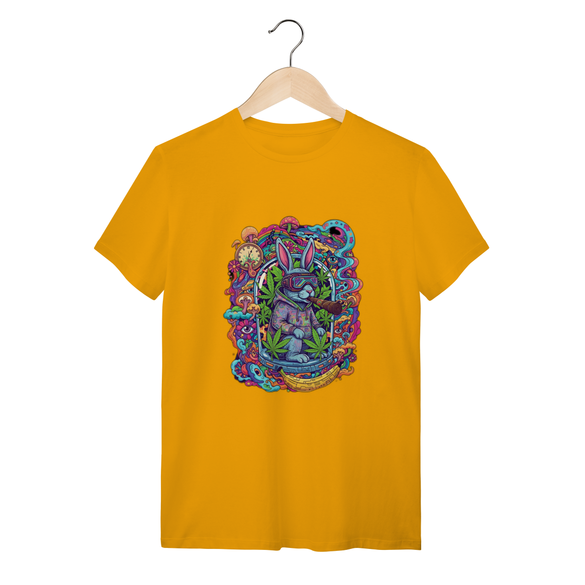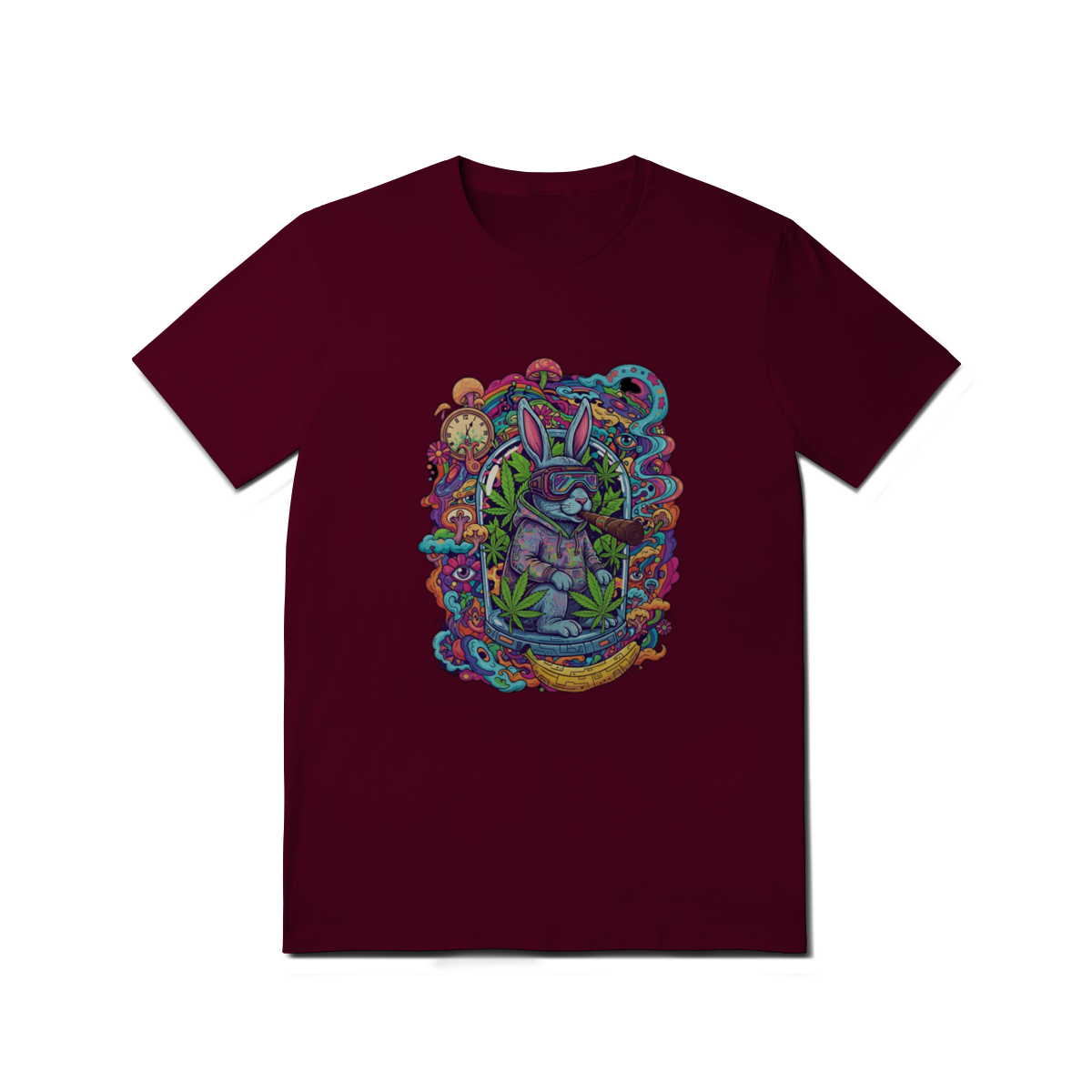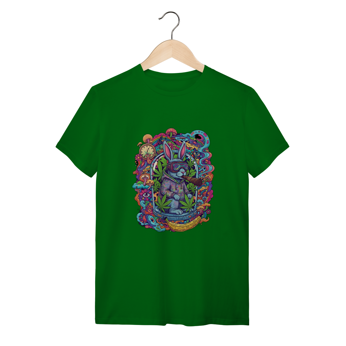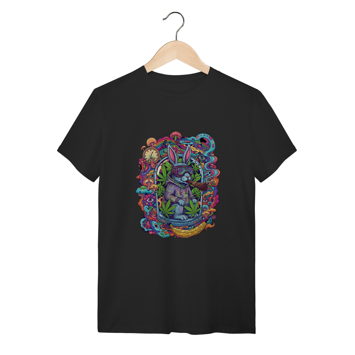 Camiseta coelho doido fumando uma bomba.
