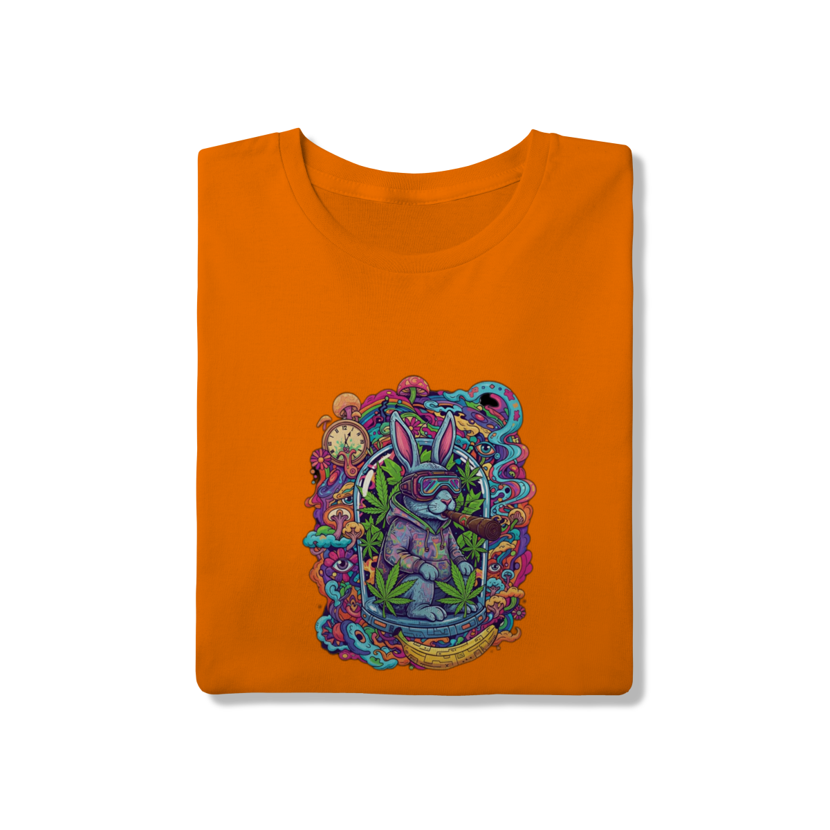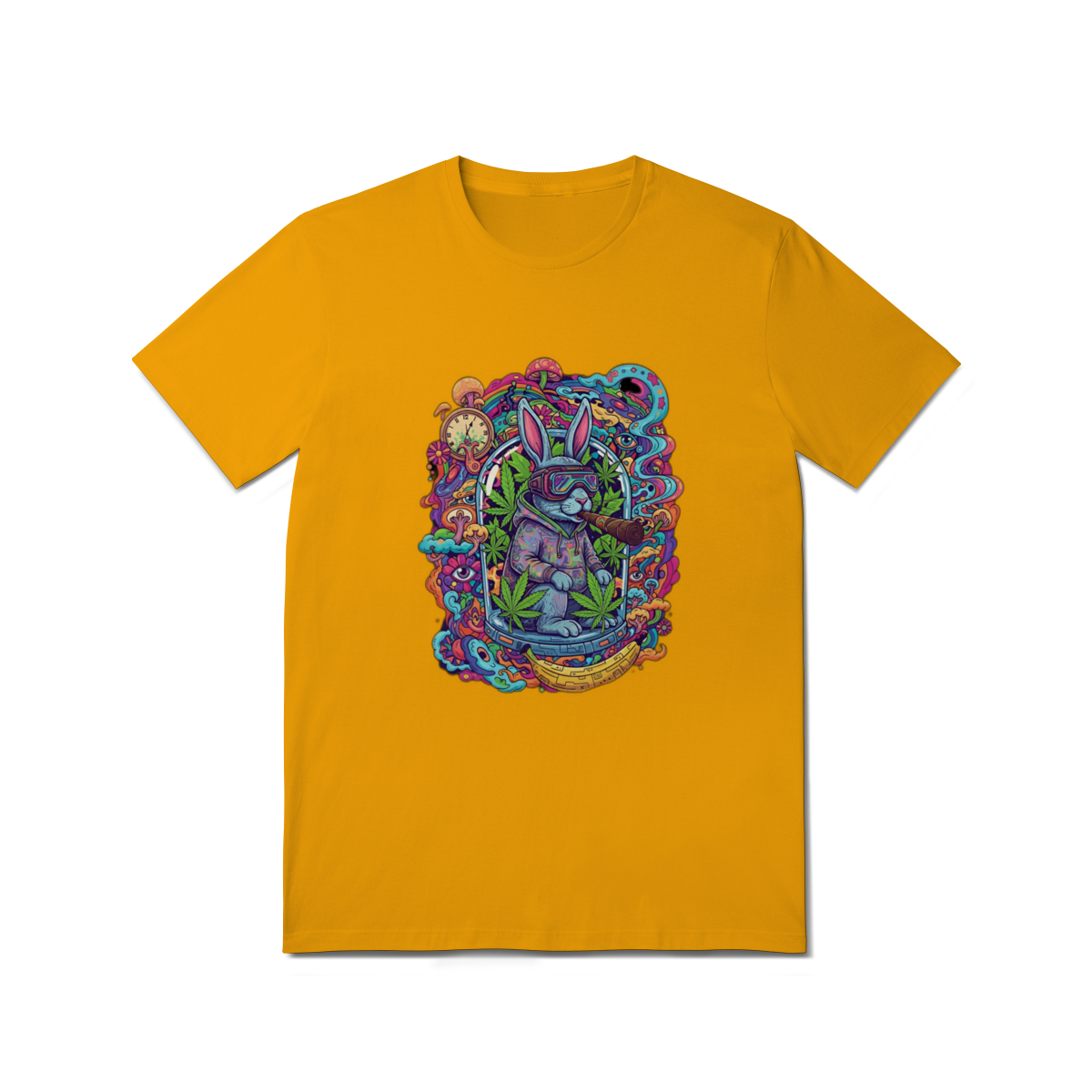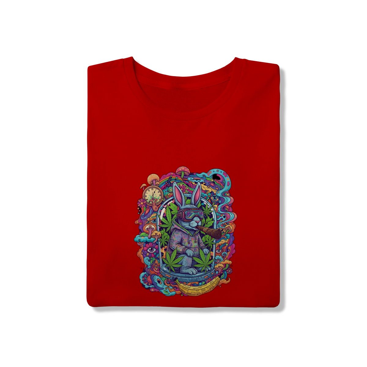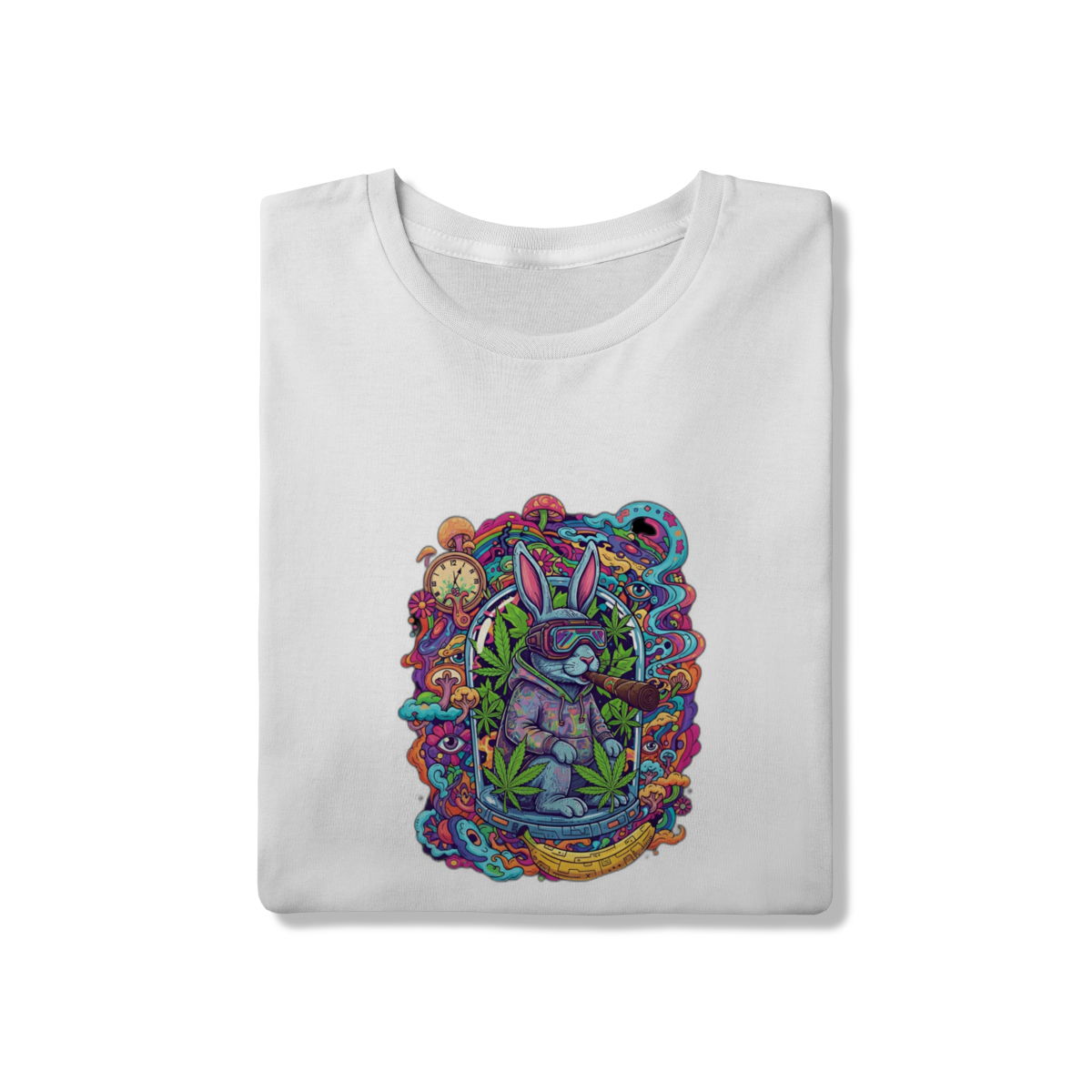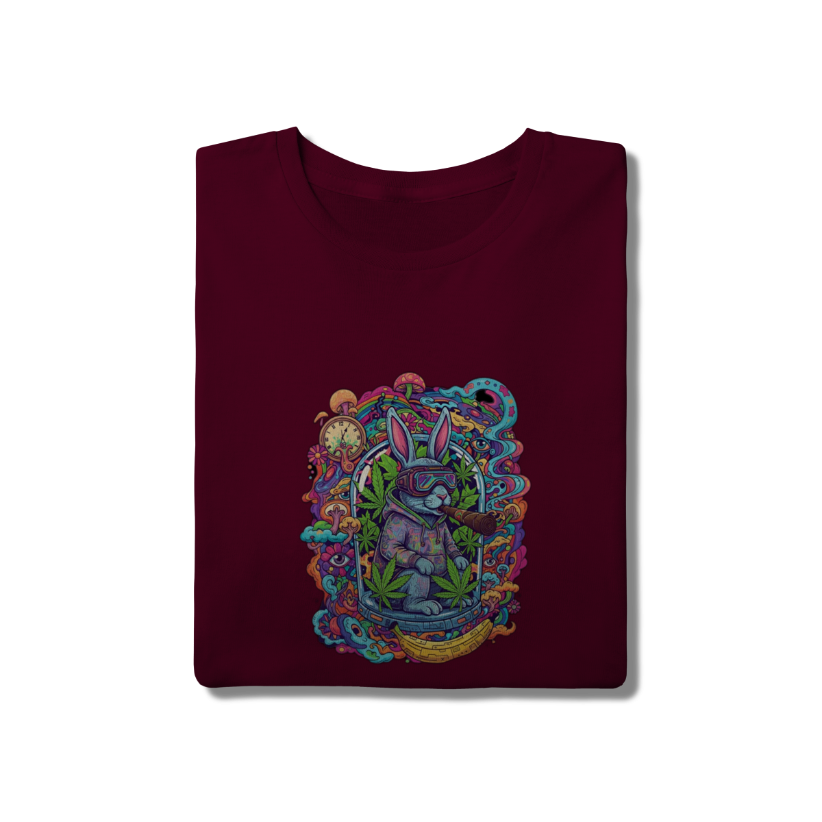 Camiseta coelho doido fumando uma bomba.