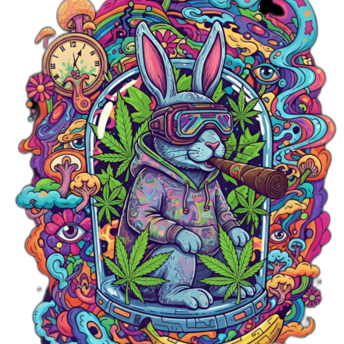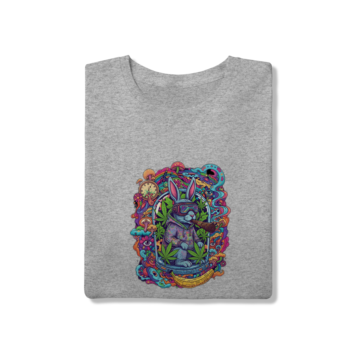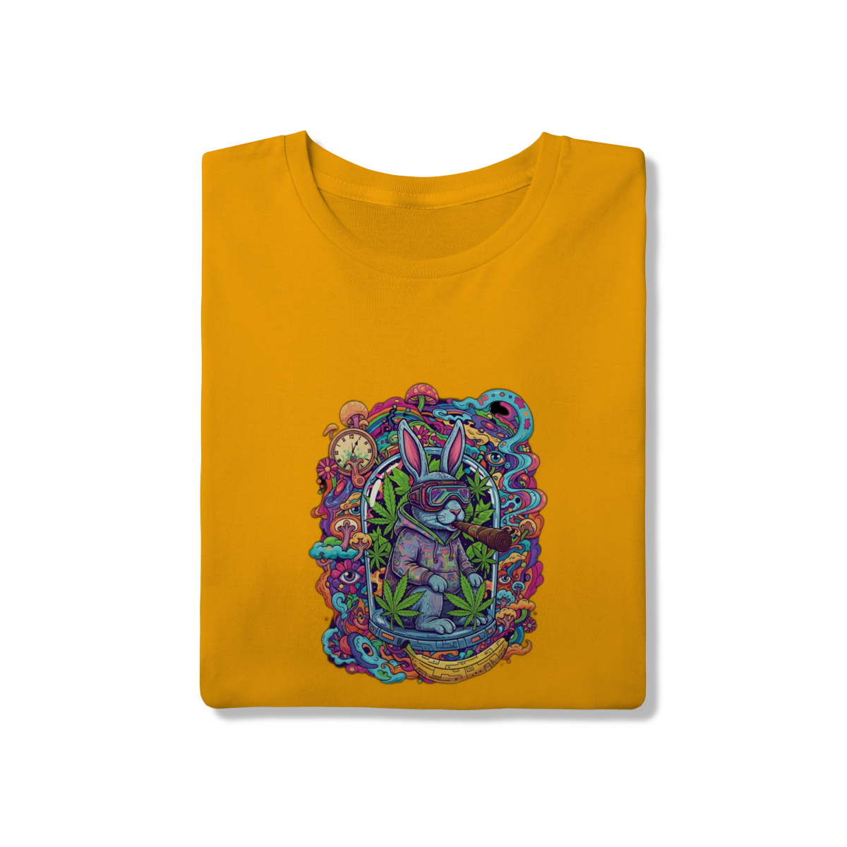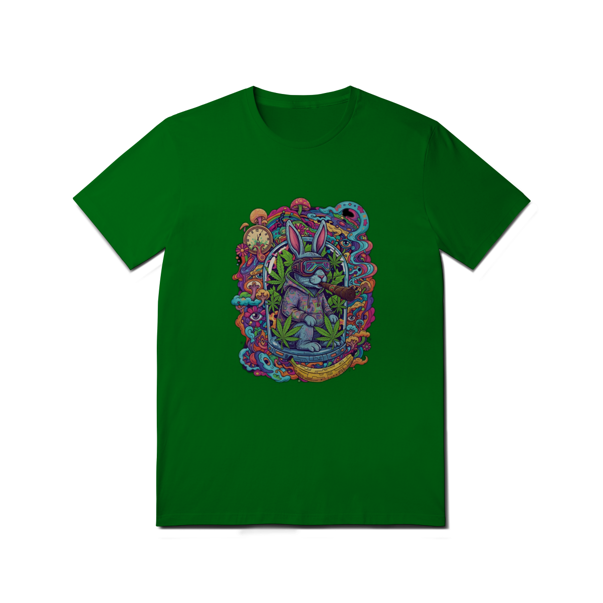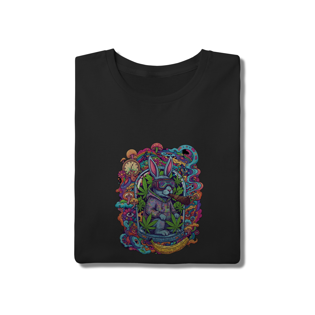 Camiseta coelho doido fumando uma bomba.